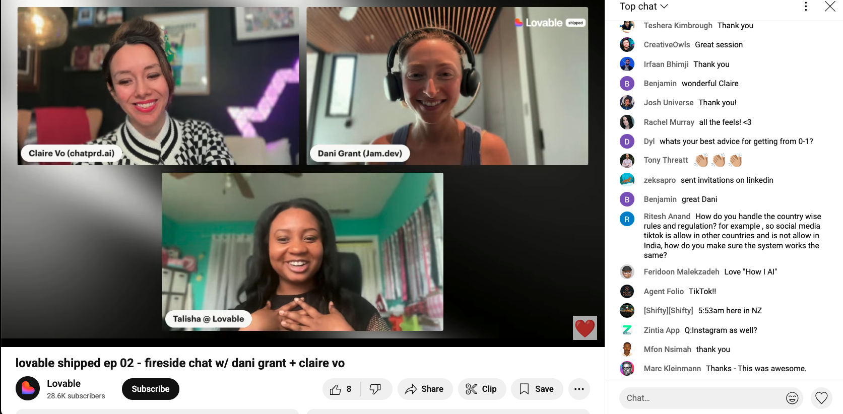 - There were about 4,000 of us building, and while some folks skirted the system by including non-Lovable products in the contest, which already had paying members, it was still fantastic to have a community to go to and support one another on the Circle app. We were encouraged and received points when we helped each other out and provided feedback on each other’s products. At the most challenging moments, it was terrific to see enthusiasm for an idea, receive actionable feedback, and provide support for others. It made me reflect that on teams, it’s essential to not only discuss the challenges but celebrate the wins. We also had guest speakers every week and seeing three female entrepreneurs sharing their story was an honor and a higlight.