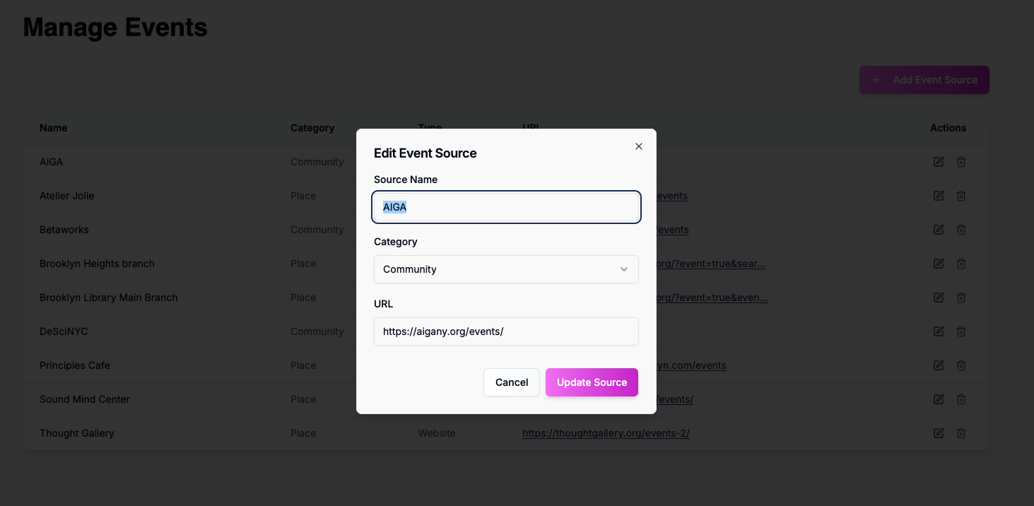 There are many ways to see event listings in New York City – including websites, newsletters, and Instagram feeds – but no one solution to aggregate them all into an easy-to-use interface.