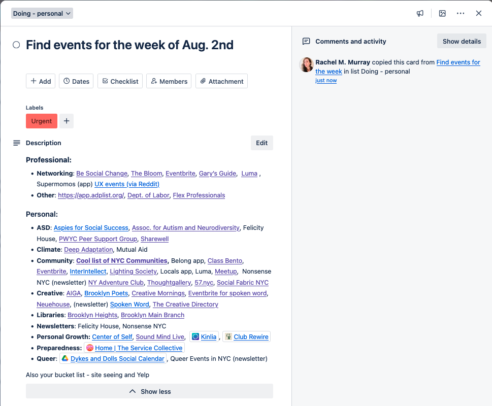 Every week, I’d spend hours trying to identify, save, register, and pay for them, and remember if I shared the event with friends. Organizing them felt more manual than necessary – I am an avid user of Trello but found myself having to click on multiple links manually. Even subscribing to events in your Google Calendar can become a maintenance headache due to inaccurate syncing, as you don’t want your personal and professional calendars cluttered with Meetup ‘maybe’ events.