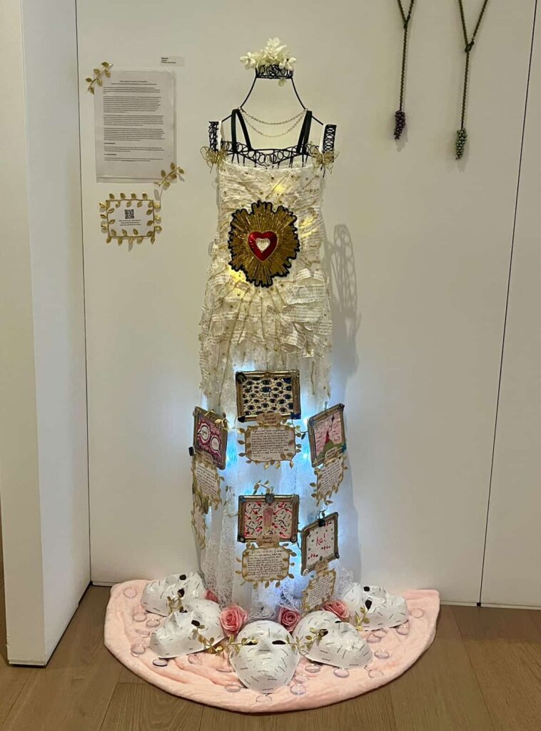 This work envisions a future that embraces the lived experiences of neurodivergent women – one grounded in acceptance, empowerment, and authenticity beyond gendered views of normalcy. Narratives in current politics and media representation do not reflect the beauty in autistic female lives. Our bravery and art can dismantle the masks of what we ‘should’ be and reclaim our existence. This piece invites all of us to embrace the richness of autistic women’s lives, to create a world where our voices are heard not in silence or disguise, but in honesty, bravery, and celebration of who we are. Where is the beauty? In defining our own experiences, in finding glimmers like the sparkles on this dress, and being ourselves after all this time.